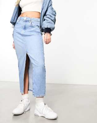 New Look - Denim-maxinederdel med slids foran i lyseblå vask