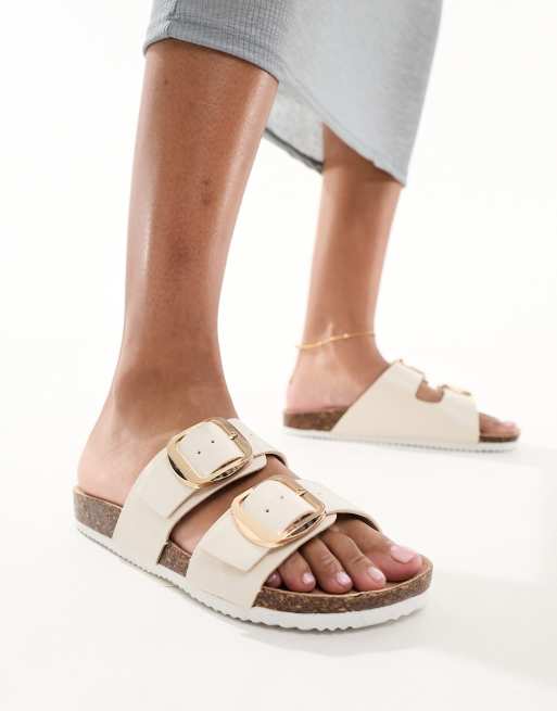 New Look - Flade råhvide sandaler med dobbeltrem med spænde