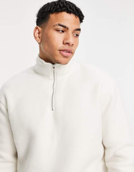 New Look - Fleece-sweatshirt med halv lynlås i cremehvid