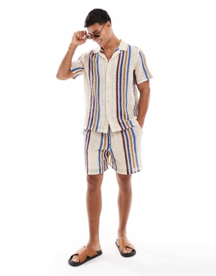 New Look - Flerfarvet og hæklet skjorte med tekstur - Del af sæt