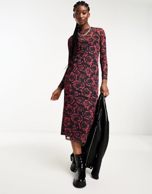 New Look - Gennemsigtig og langærmet midikjole med roseprint