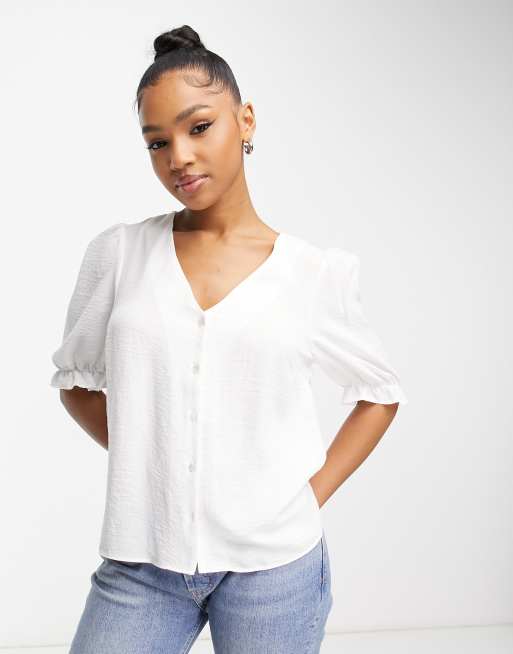 New Look - Hvid bluse med gennemgående knapper