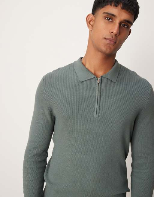 New Look - Kakigrøn langærmet polo med 1/4 lynlås