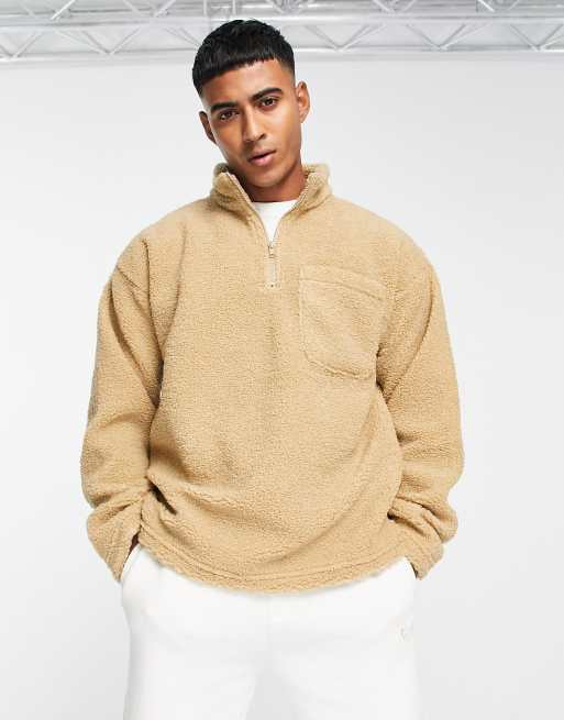 New Look - Kamelfarvet sweatshirt i imiteret lammeskind med ståkrave og lynlås