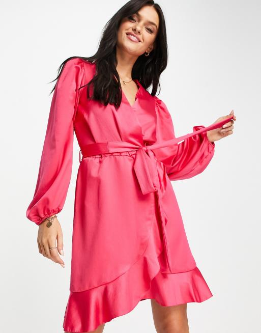 New Look - Lys pink slå-om-kjole i satin med flæser