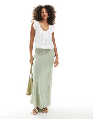 New Look - Lysegrøn maxinederdel i hørblandingsmateriale med tværsnit