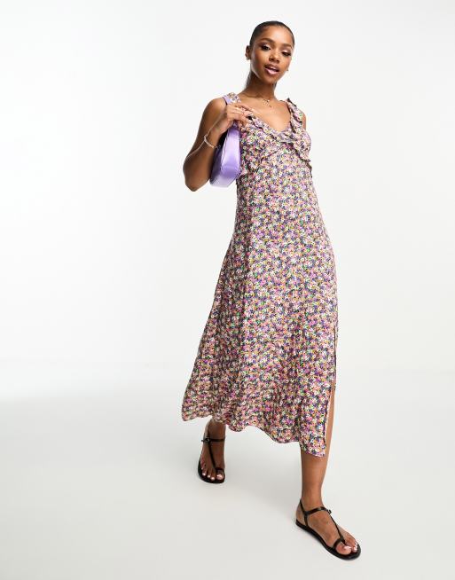 New Look - Midikjole med flæser og blomstermønster