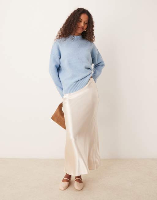 New Look - Minkfarvet midinederdel med skråsnit i satin