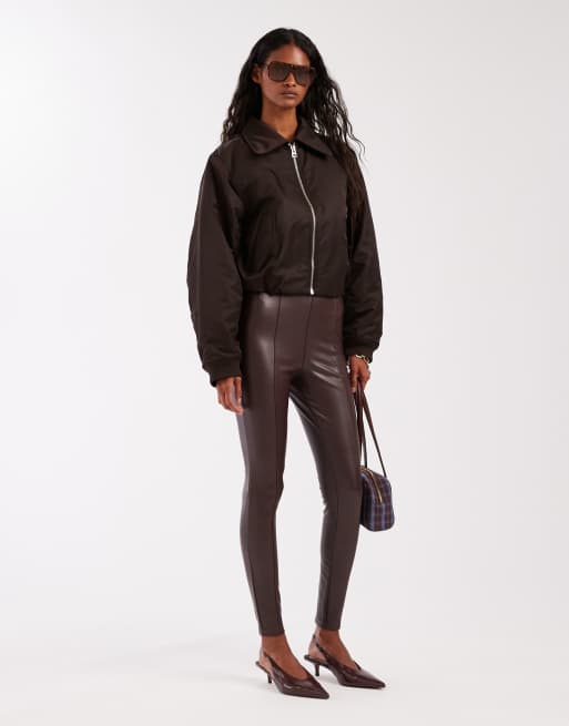 New Look - Mørkebrune leggings i imiteret læder