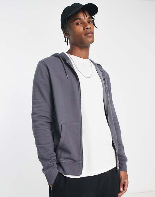 New Look - Mørkegrå hættetrøje med gennemgående lynlås