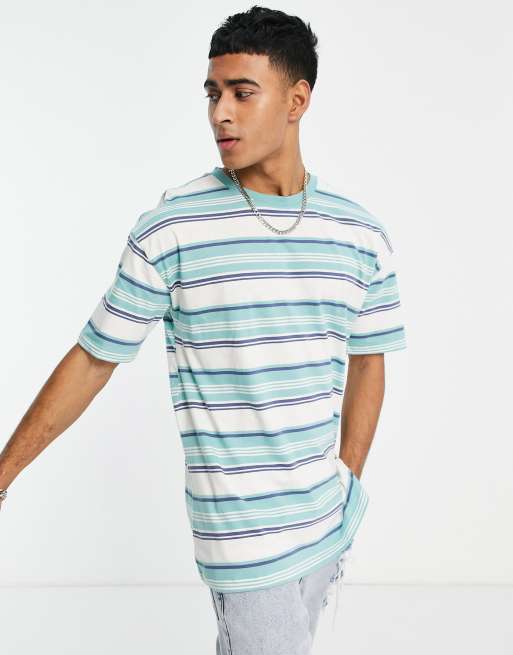 New Look - Oversized blå T-shirt med striber