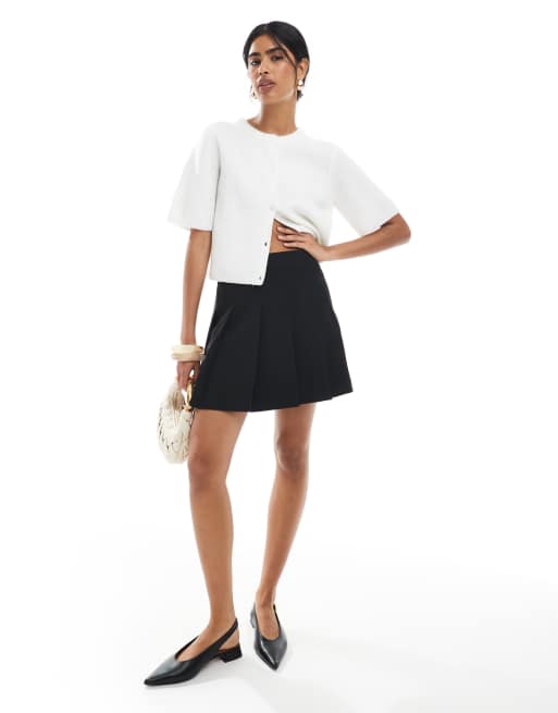 New Look - Plisseret mininederdel i sort i firkantet pasform