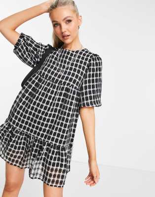 New Look - Smock-minikjole med pufærmer i sorte tern