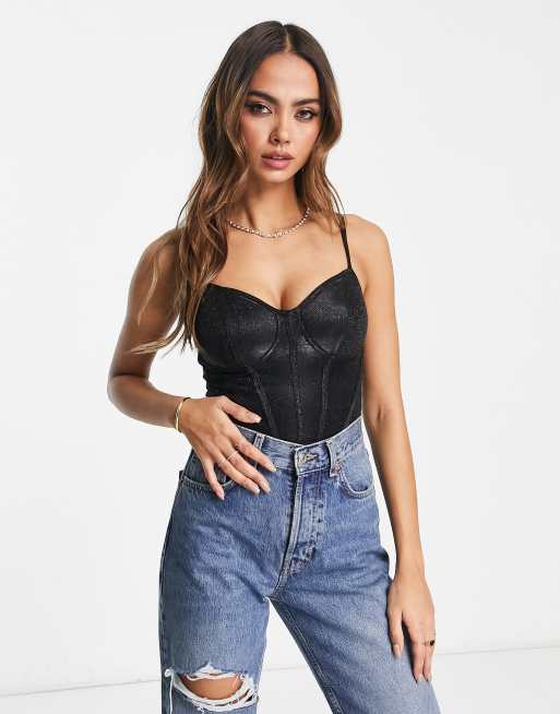 New Look - Sort korset-bodystocking med glimmer