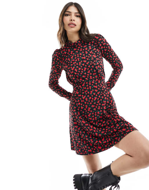 New Look - Sort minikjole i jersey med svaj og rosenprint