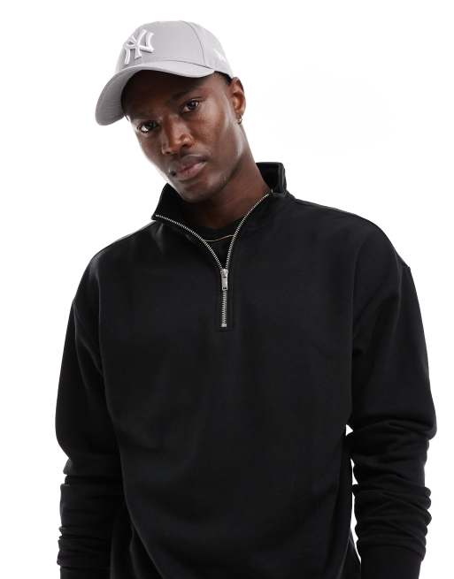 New Look — Sort sweater med 1/4 lynlås og ståkrave