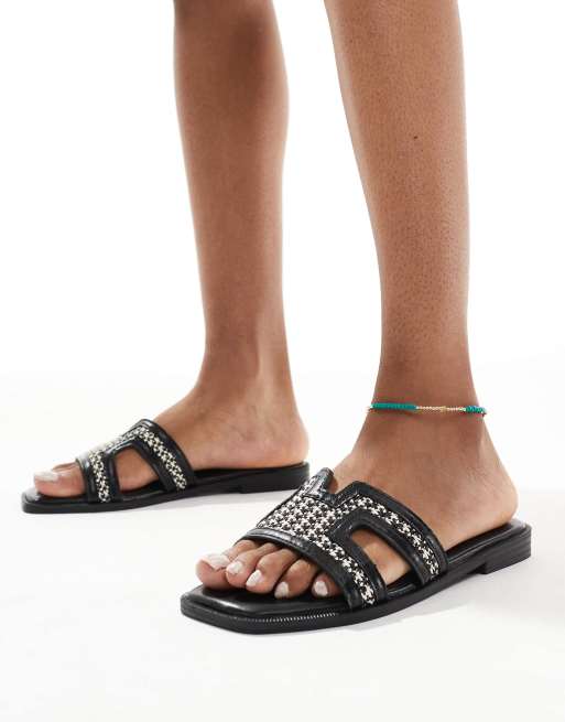 New Look - Sorte sandaler med udskæring i raffia