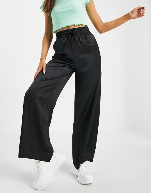 New Look - Sorte satinbukser med vide ben - Del af sæt