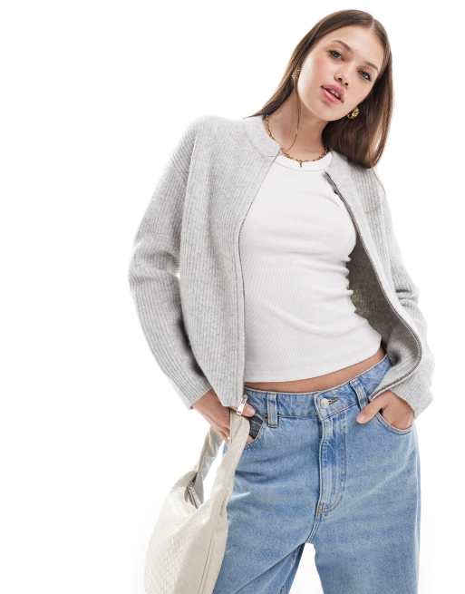 New Look - Strikket grå cardigan med lynlås