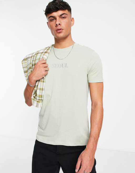 New Look - T-shirt med bybroderi i lys kakigrøn