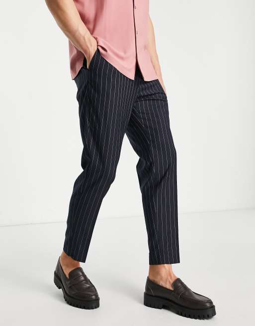 New Look - Tapered plisserede elegante bukser i marineblå med nålestriber