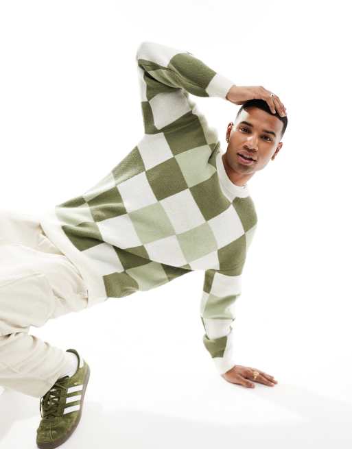 New Look - Trøje med grønne tern og rund hals
