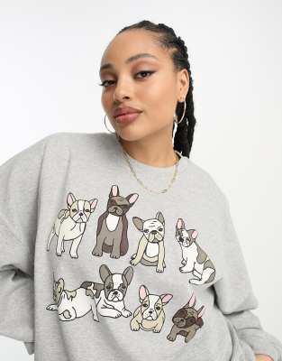 New Love Club Plus - Askegrå sweatshirt med mopsprint