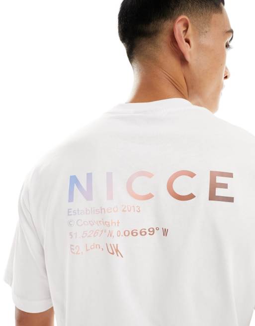NICCE - Oversized hvid T-shirt med forvrænget logoprint på bryst og ryg