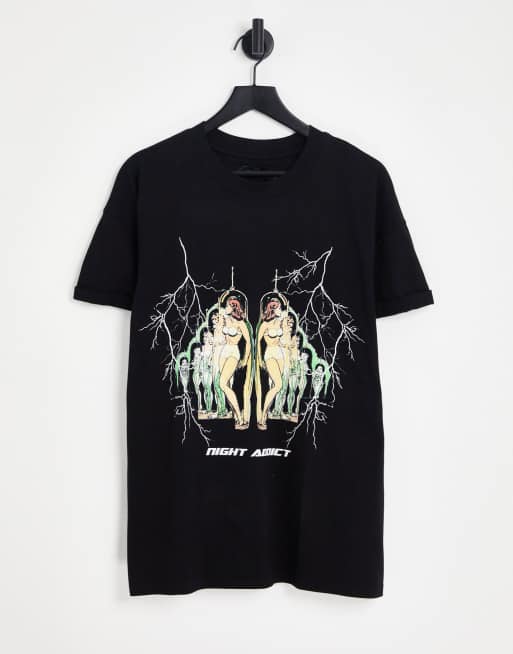 Night Addict - T-shirt med symmetrisk brystprint i sort