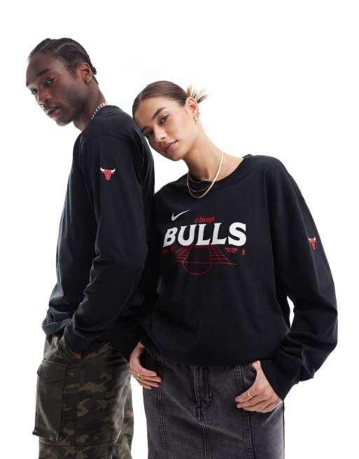 Nike Basketball - Unisex - NBA Chicago Bulls - Sort T-shirt med lange ærmer og logo