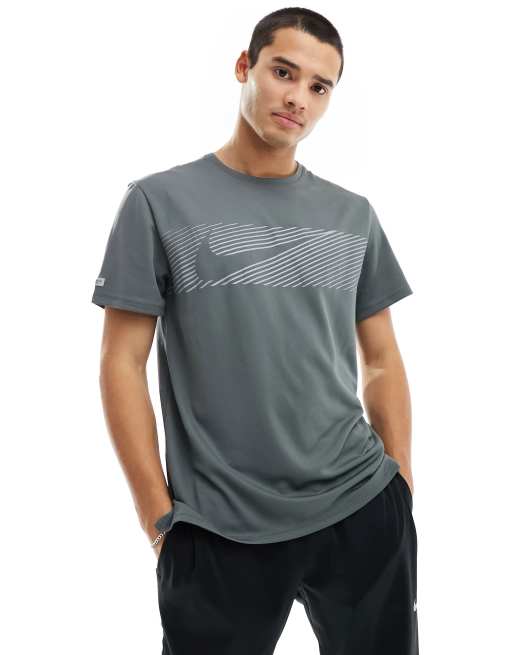 Nike Running - Flash Dri-FIT Miler - Mørkegrå T-shirt med reflekterende logo