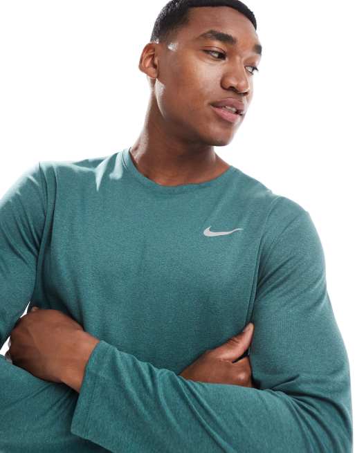 Nike Running - Miler Dri-FIT - Langærmet mørkegrøn T-shirt