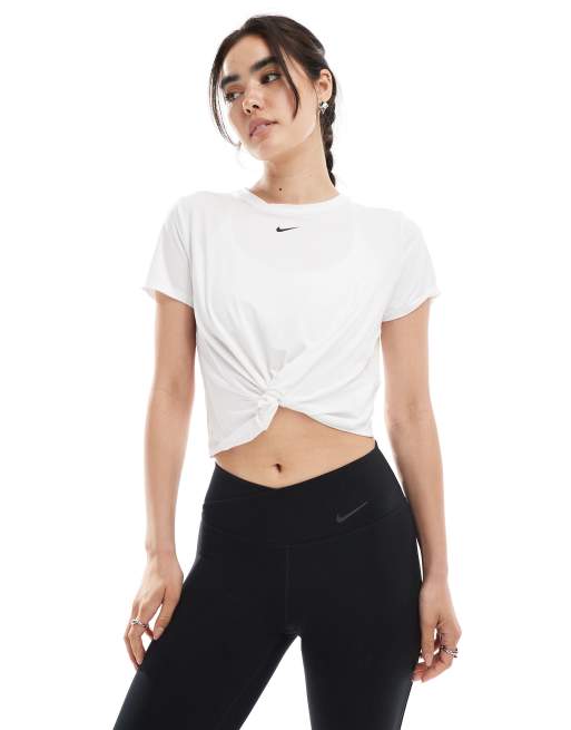 Nike One Training - Dri-FIT - Hvid T-shirt med snoning foran