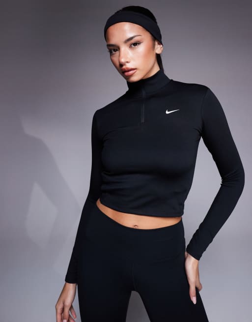 Nike One Training - Figursyet sort top med lange ærmer og halv lynlås