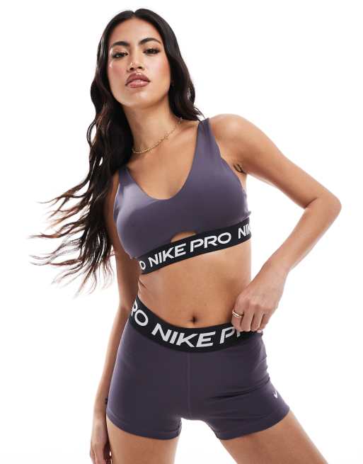 Nike Pro Training - Indy - Grå sports-BH med dyb udskæring og medium støtte