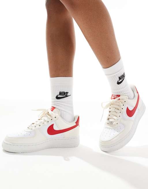Nike - Air Force 1' 07 NN - Råhvide og røde sneakers