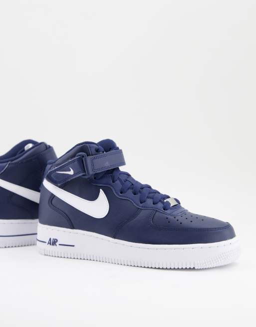 Nike - Air Force 1 - Middelhøje sneakers i marineblå og hvid