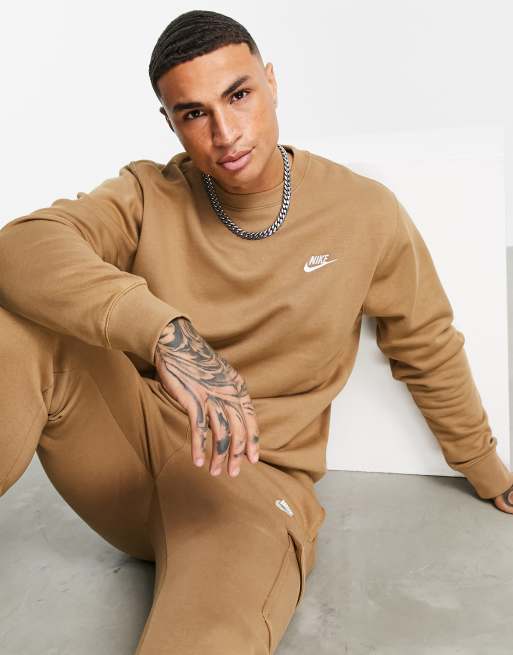 Nike - Club - Gråbrun sweatshirt i fleece med rund hals