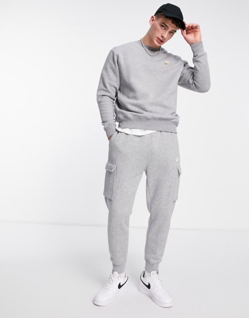 Nike - Club - Gråt træningssæt med metalfarvet logo