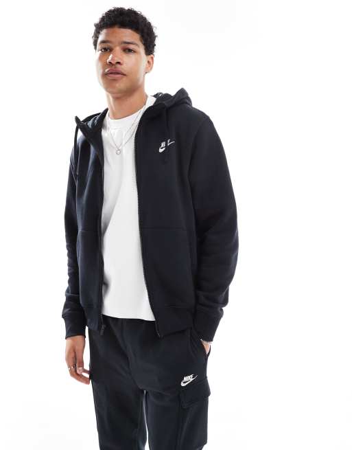 Nike - Club - Sort hættetrøje med gennemgående lynlås i fleece