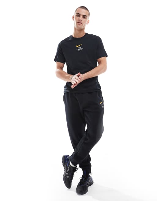 Nike - Club Swoosh - Sorte joggingbukser med gul grafik