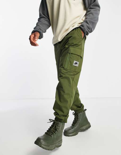 Nike - Cropped, grønne og vævede utility-joggingbukser