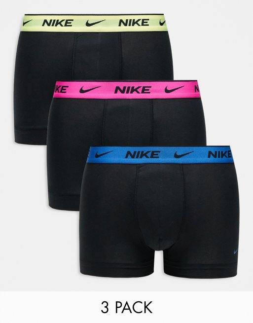 Nike - Eceryday Cotton Stretch - Pakke med 3 par boksershorts i sort med neonfarvet linning