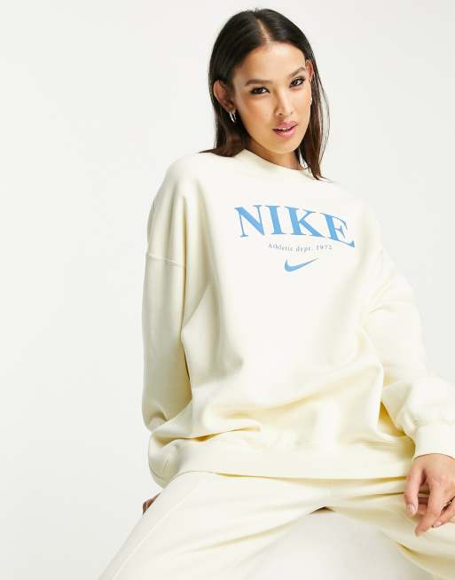 Nike - Essential - Cremehvid fleece-sweatshirt med rund hals og retro-logo