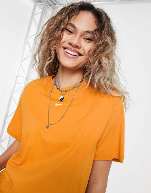 Nike - Essential - Orange boyfriend-T-shirt med lille Swoosh-logo