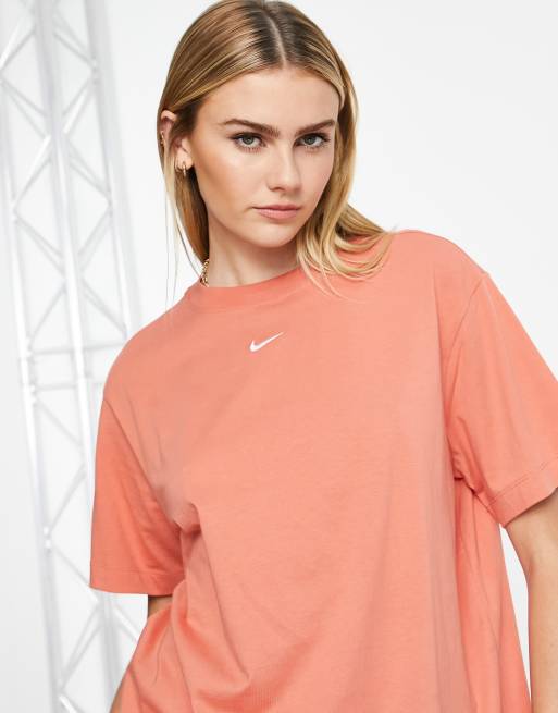 Nike - Essentials - Krebserød boyfriend-T-shirt med lille Swoosh-logo
