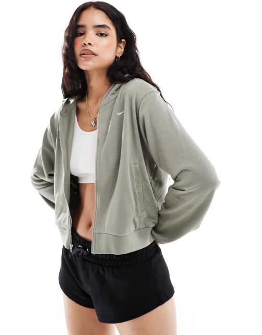 Nike - Grå hættetrøje med lynlås i frotté