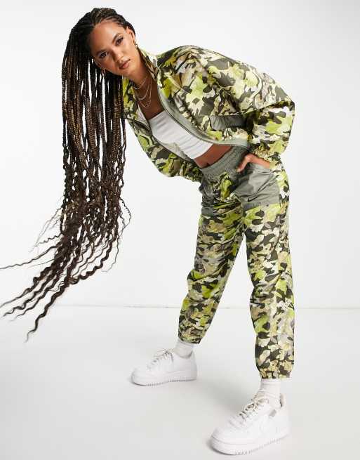 Nike - Grå og gul camo-jakke med heldækkende print