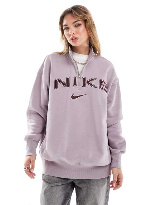 Nike - Phoenix - Lilla sweatshirt med logo og 1/4 lynlås i fleece