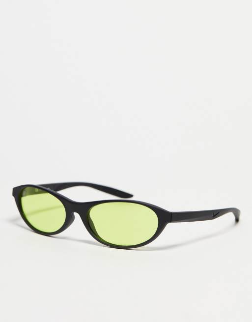 Nike - Sorte retro-solbriller med neongrønne glas